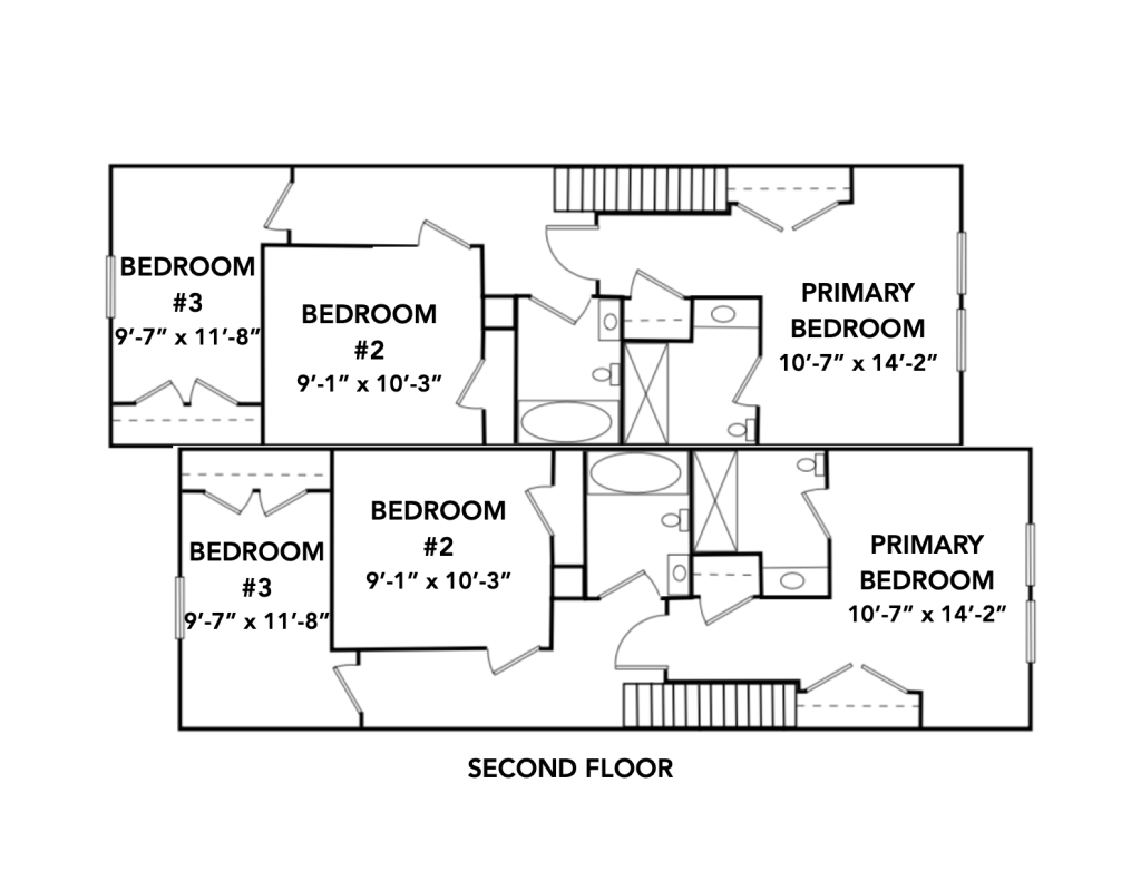 This duplex includes two units, each exceeding 1,300 square feet of living space with a layout well-tailored to many urban areas, particularly in the midwest. The kitchen, dining room and living room are located on the first floor with a half bath, while the second floor includes a primary bedroom with en suite bath, along with two additional bedrooms and a full bath.