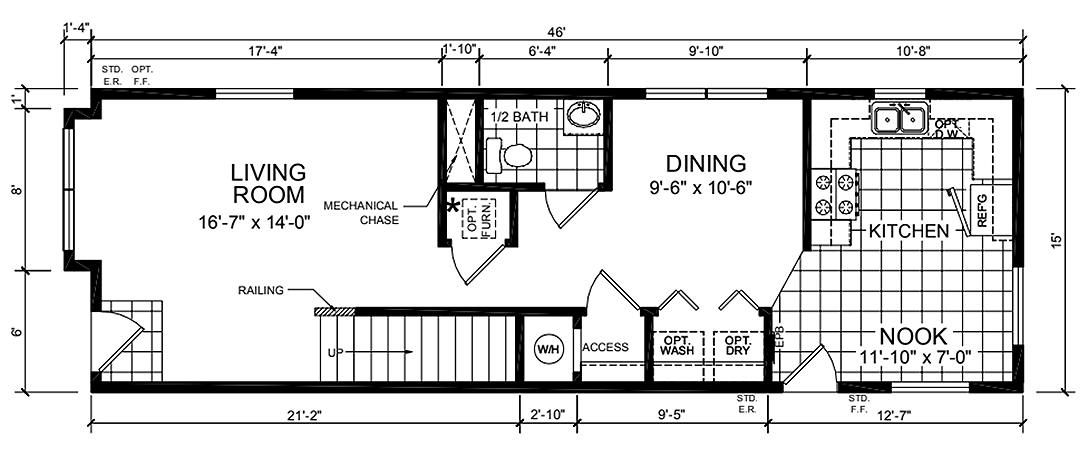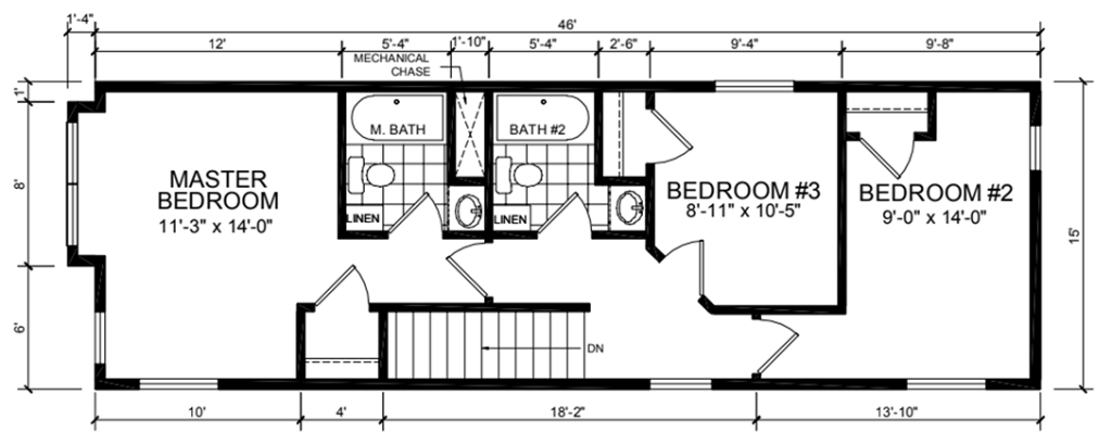This 2-story unit includes over 1,300 square feet of living space and offers smart design in a layout well-tailored to many urban areas, particularly in the midwest. The kitchen, dining room and living room are located on the first floor with a half bath, while the second floor includes a primary bedroom with en suite bath, along with two additional bedrooms and a full bath.