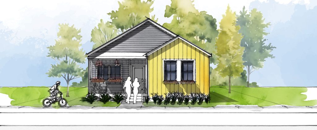 With three bedrooms and two bathrooms and nearly 1,600 square feet of space, the Sparrow is our take on traditional family living. Enter through the living room and enjoy a thoughtfully paired kitchen and dining room. The public areas of The Sparrow are intentionally separated from bedrooms and baths to create zones of community and areas of privacy. Variations on this floor plan can facilitate ADA and other accessibility-oriented features.