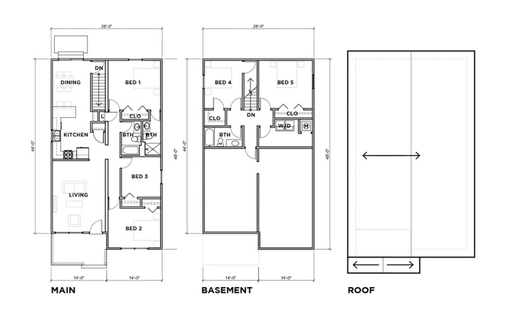 With three bedrooms and two bathrooms, The Sparrow is our take on traditional family living. A spacious nearly 1,600 square feet of space, enter through the living room and enjoy a well thought out kitchen and dining room. The public spaces of The Sparrow are nicely separate from private bedrooms and baths.